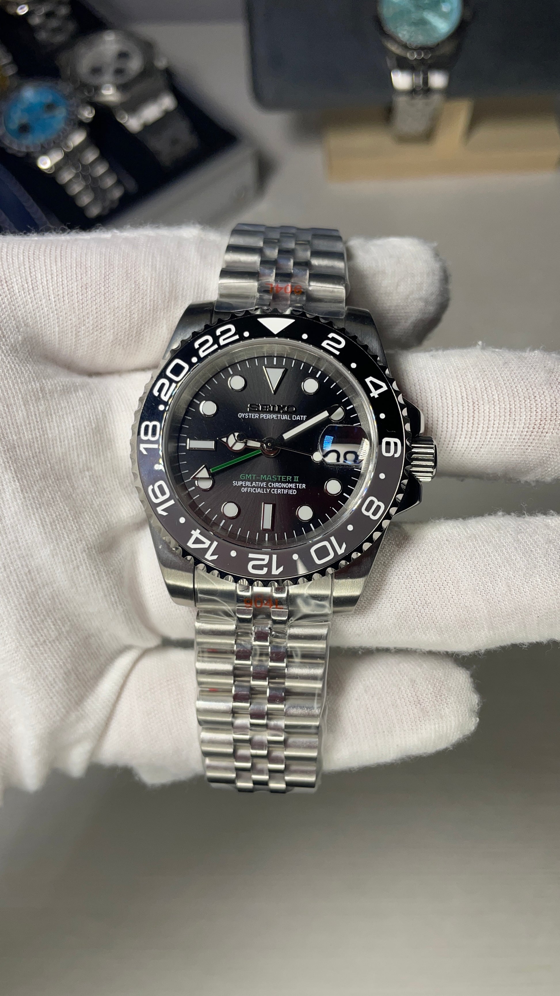 Inspirado en el Diseño icónico GMT y con el prestigioso logotipo Movimiento automático original NH34 , presentamos el GMT Master II. Un reloj de 40 mm de alta calidad. Combinando la alianza perfecta entre excelencia y accesibilidad.